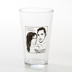 These quality 15 oz Pint glass comes printed in your favorite colours Black, White, Red, Blue, Green, Teal, Hot Pink, Purple, Light Purple, Pink, Lt. Pink, Turquoise, Lt. Blue, Gold, Lime Green, Gray, Silver and Dark Blue Metallic Silver and Gold ADD $.10 per glass. Comes printed with three lines of print. Chose from Many different fonts and designs we have available.